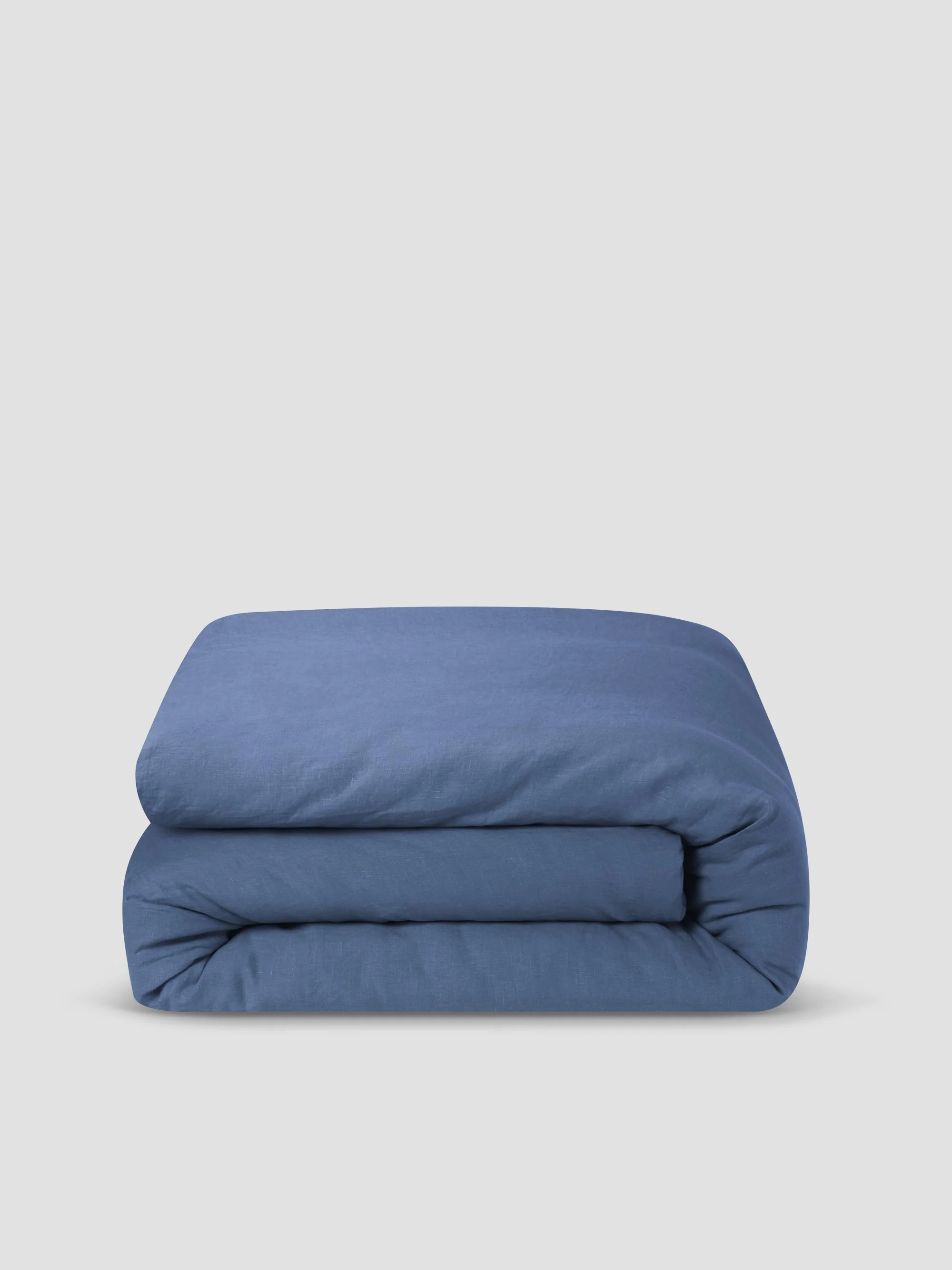 Our Blueberry linen blend duvet cover is a versatile dusky blue hue that works in calm, cosy and dramatic spaces. Made from only the highest-quality fibres, the breathable fabric combines the effortless look of linen with the softness of cotton. Our linen blend duvet covers are finished with coconut shell button fastenings and feature handy inside corner ties to stop your duvet from slipping.