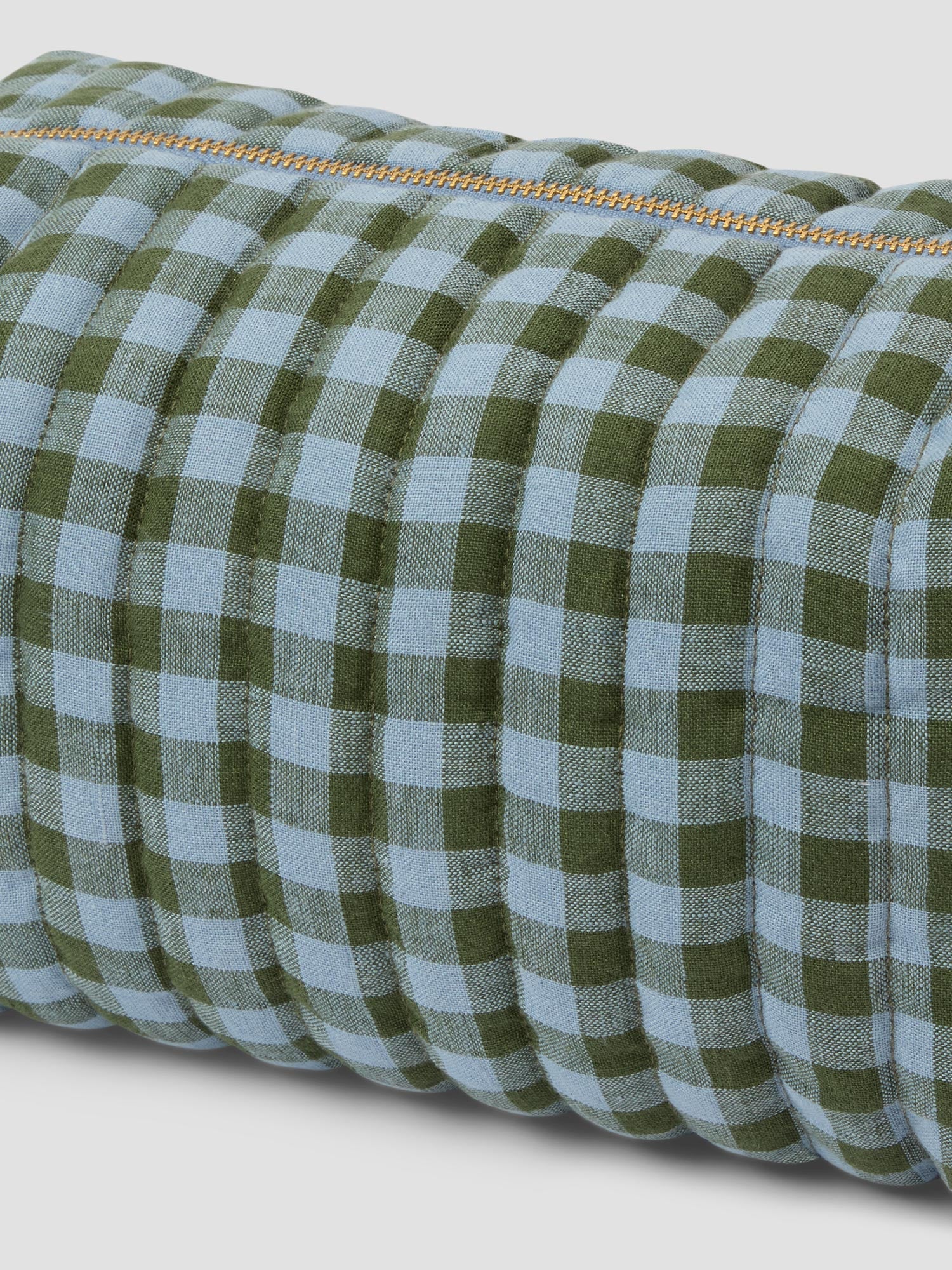 Fern Green & Dusk Blue Colour Drenched Gingham Linen Blend Wash Bag
