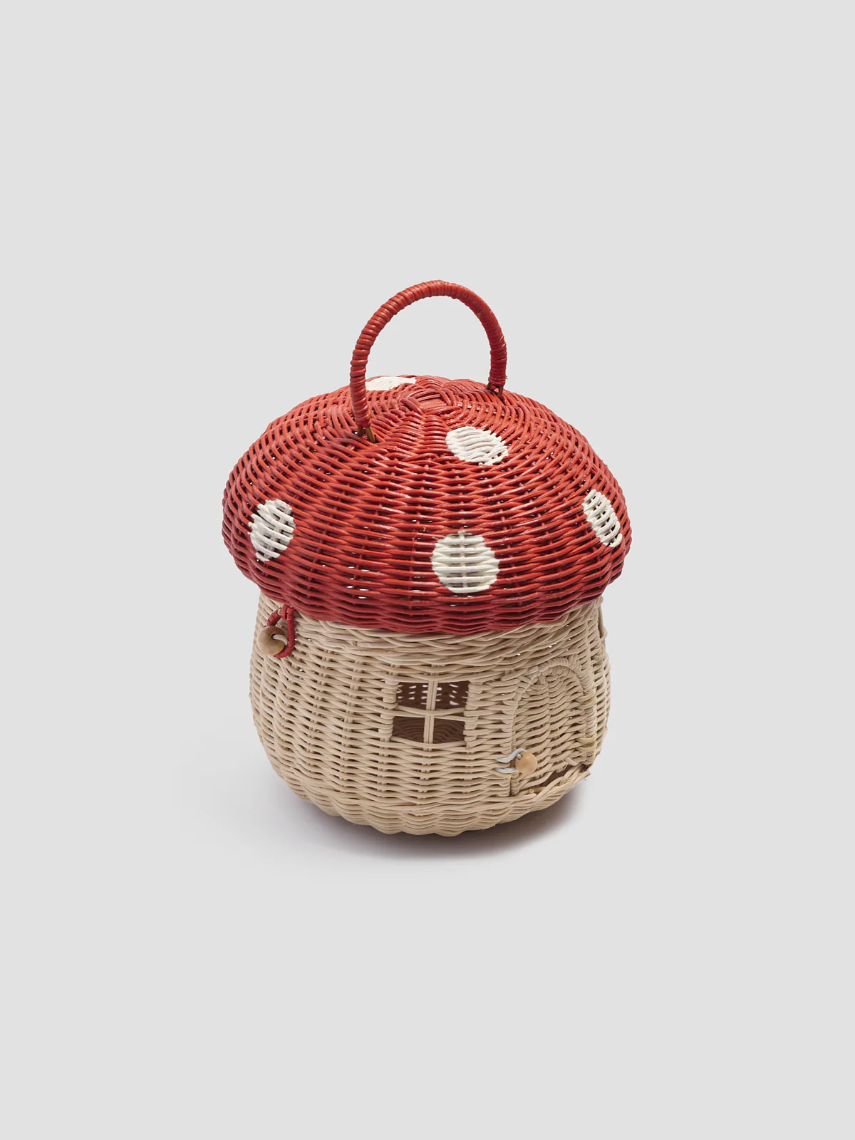 Designed for adventures big and small, this Red mushroom basket will bring some extra magic and whimsical charm to playtime. With a generous size, adjustable handle, and a little door (which opens and closes), your little ones can carry their favourite treasures wherever they go. The basket has a flat base so is perfect as a decorative piece too.