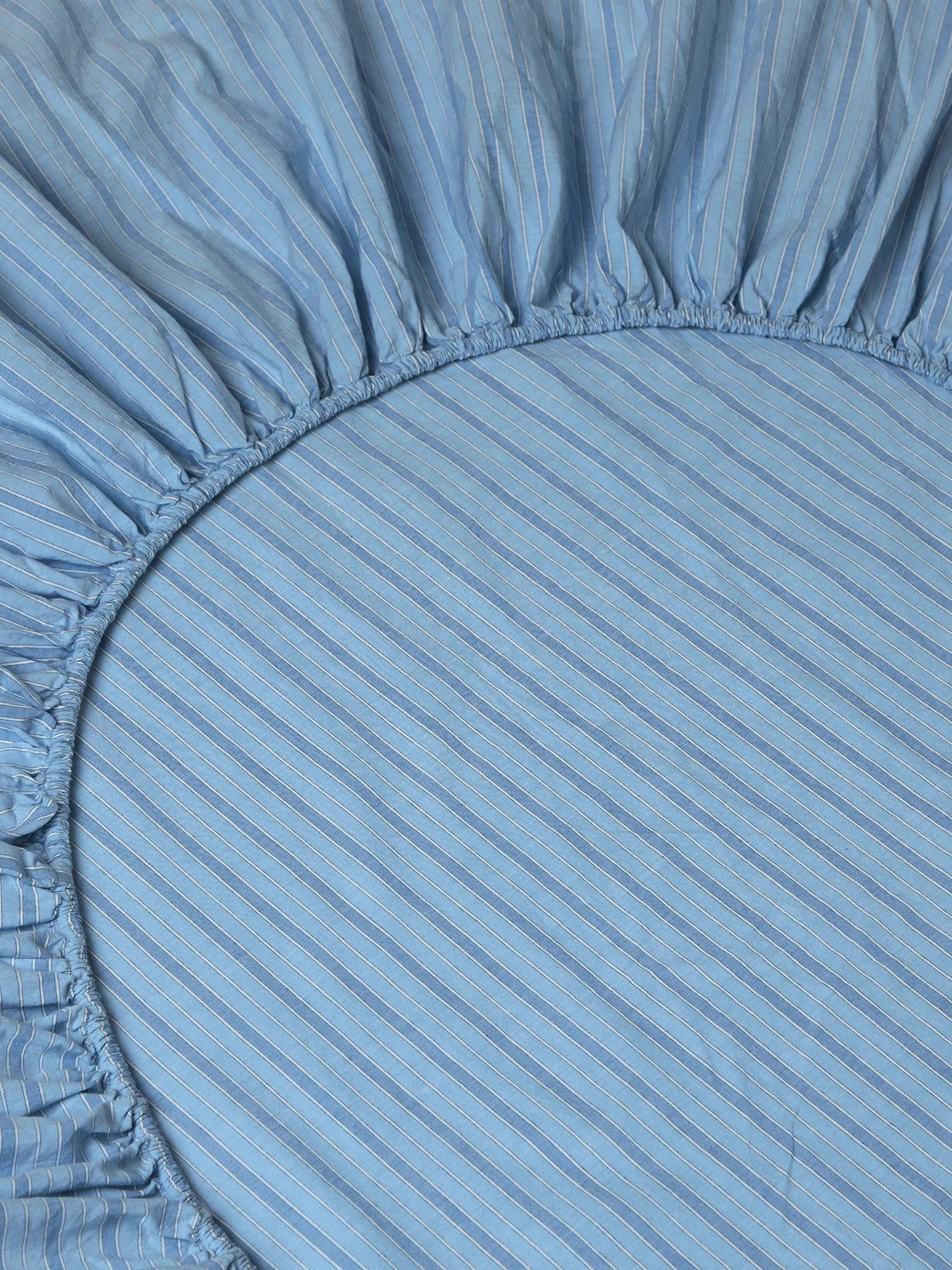Inspired by a classic and much-loved wardrobe staple, our Pale Blue Favourite Shirt stripe cotton fitted sheet really is timeless. Woven from 100% washed cotton percale, this bedding is soft and breathable with a beautiful lived-in feel. Our fitted sheets have elasticated edges all the way around and fit mattresses up to 40cm deep.